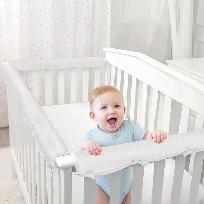 - 【Protect Teeth for Chewing】Resistant to biting. Our crib teething guard rail covers help protects teeth. Each piece is designed with solid strips and tied on, which is easy to fix firmly. The crib rail cover ensures your baby's.