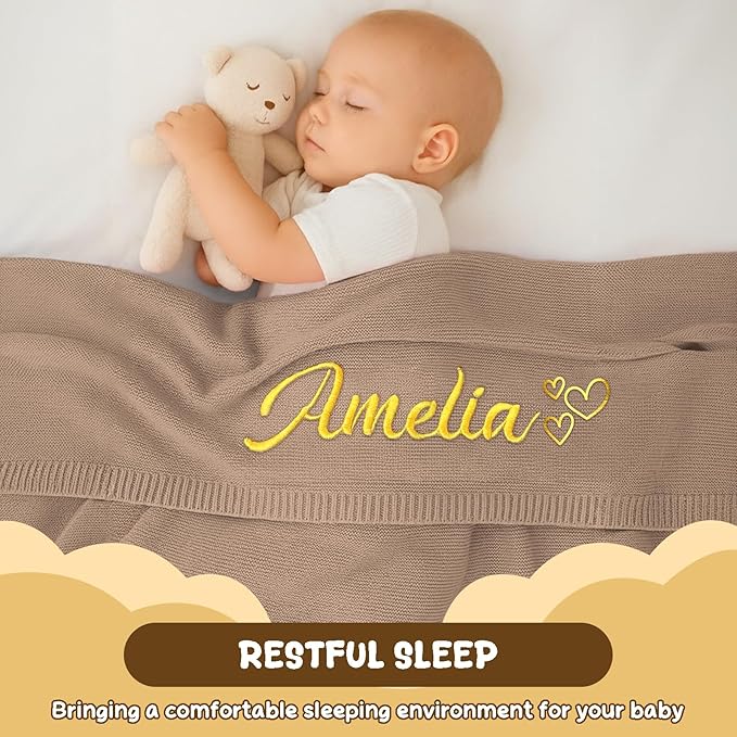 Personalized Baby Blanket Embroidered with Name,100% Baby-Safe Cotton, Knit Nap Blanket,Custom Blanket for Girls/Boys,30x40in Personalized Baby Gifts for Newborn boy