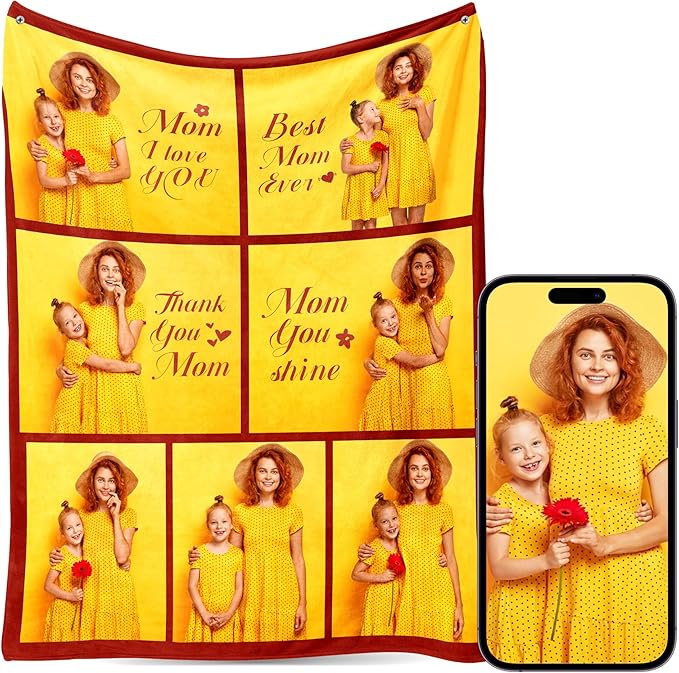 Custom Personalized 9 Photo Collage Blanket Thow Gifts with Text, Customized Pictures Blankets Gift for Christmas Birthday Thanksgiving Adults Kids Dad Mom Girlfriend Boyfriend (7 mom Daughter)