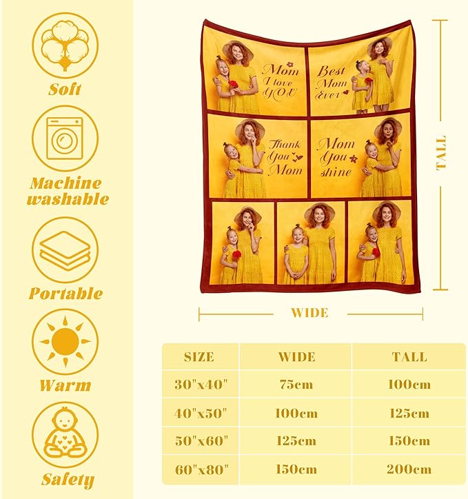- [The Heartfelt Surprise Gift] Surprise anyone you love! It's more than a blanket, it's a hug of memories. Printed photos and text capture precious moments, making it an emotional keepsake that will warm the heart and body for years to come