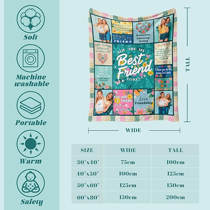 - [Perfect Gift for friend] A blend of moving words and precious photos, whether it's for a holiday, a friend's birthday gift, or an everyday thank you, this loving blanket lets her embrace the warmth of your heart every day, all the time