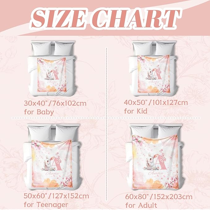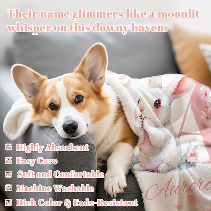 Personalized Baby Name Blanket, Custom Blankets and Throws with Name for Kids Girls Boys, Customized Toddler Blanket Gifts for Christmas Birthday Baby Shower(Name Rabbit)