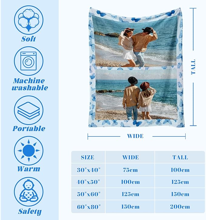 - [Precision Personalization, Just for You] Transform your memories into touchable, precious goodies! Whether you choose to print a photo alone or add a text design, every detail you upload will be accurately rendered. From family gatherings to personal milestone moments, create a blanket just for you