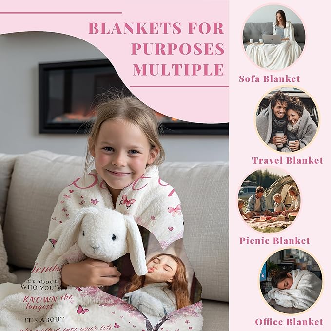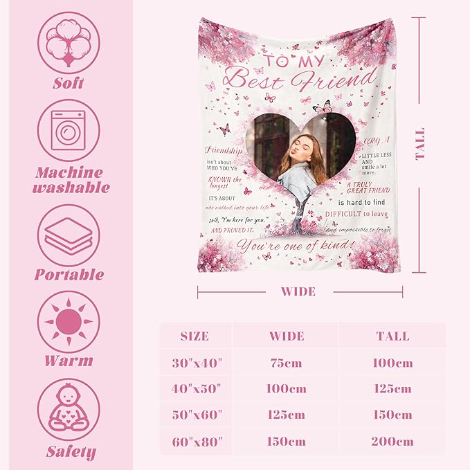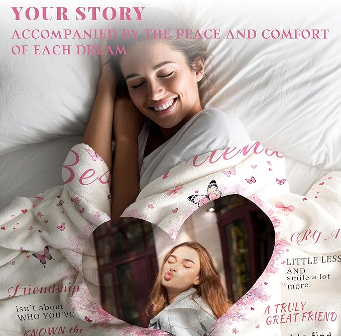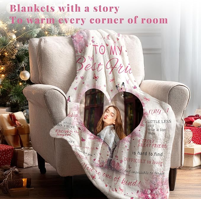 - [Perfect Gift for friend] A blend of moving words and precious photos, whether it's for a holiday, a friend's birthday gift, or an everyday thank you, this loving blanket lets her embrace the warmth of your heart every day, all the time