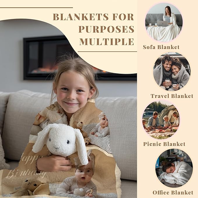 - [Precision Personalization, Just for You] Transform your memories into touchable, precious goodies! Whether you choose to print a photo alone or add a text design, every detail you upload will be accurately rendered. From family gatherings to personal milestone moments, create a blanket just for you