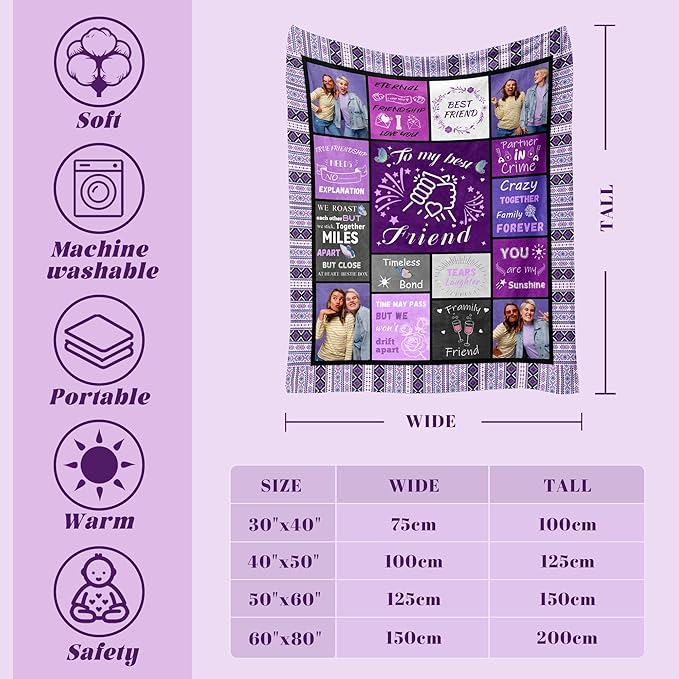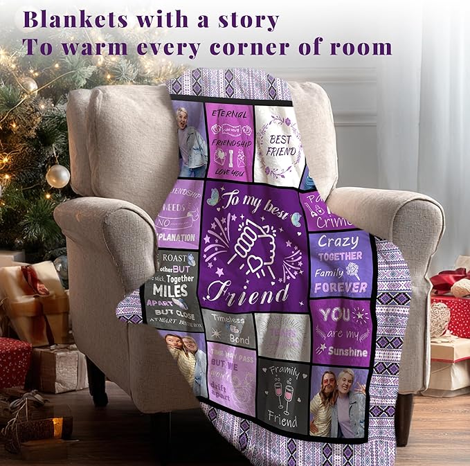 - [Perfect Gift for friend] A blend of moving words and precious photos, whether it's for a holiday, a friend's birthday gift, or an everyday thank you, this loving blanket lets her embrace the warmth of your heart every day, all the time