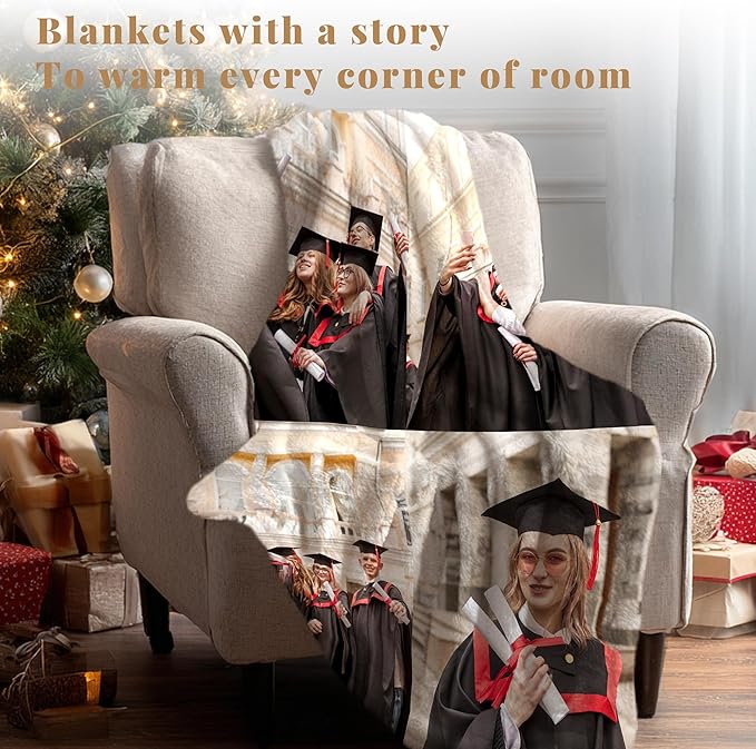 Custom Personalized 9 Photo Collage Blanket Thow Gifts with Text, Customized Pictures Blankets Gift for Christmas Birthday Thanksgiving Adults Kids Dad Mom Girlfriend Boyfriend (4 Graduate)