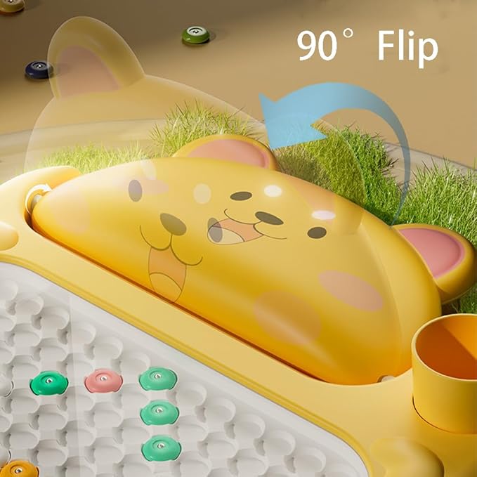 Cartoon Magnetic Drawing Board, Shiba Bear Dot Art Design, ABS Cartoon, Interactive Bead Pen Art with Pattern Guide, Durable Travel, Home Creative Board for Little Artist (Large Shiba)